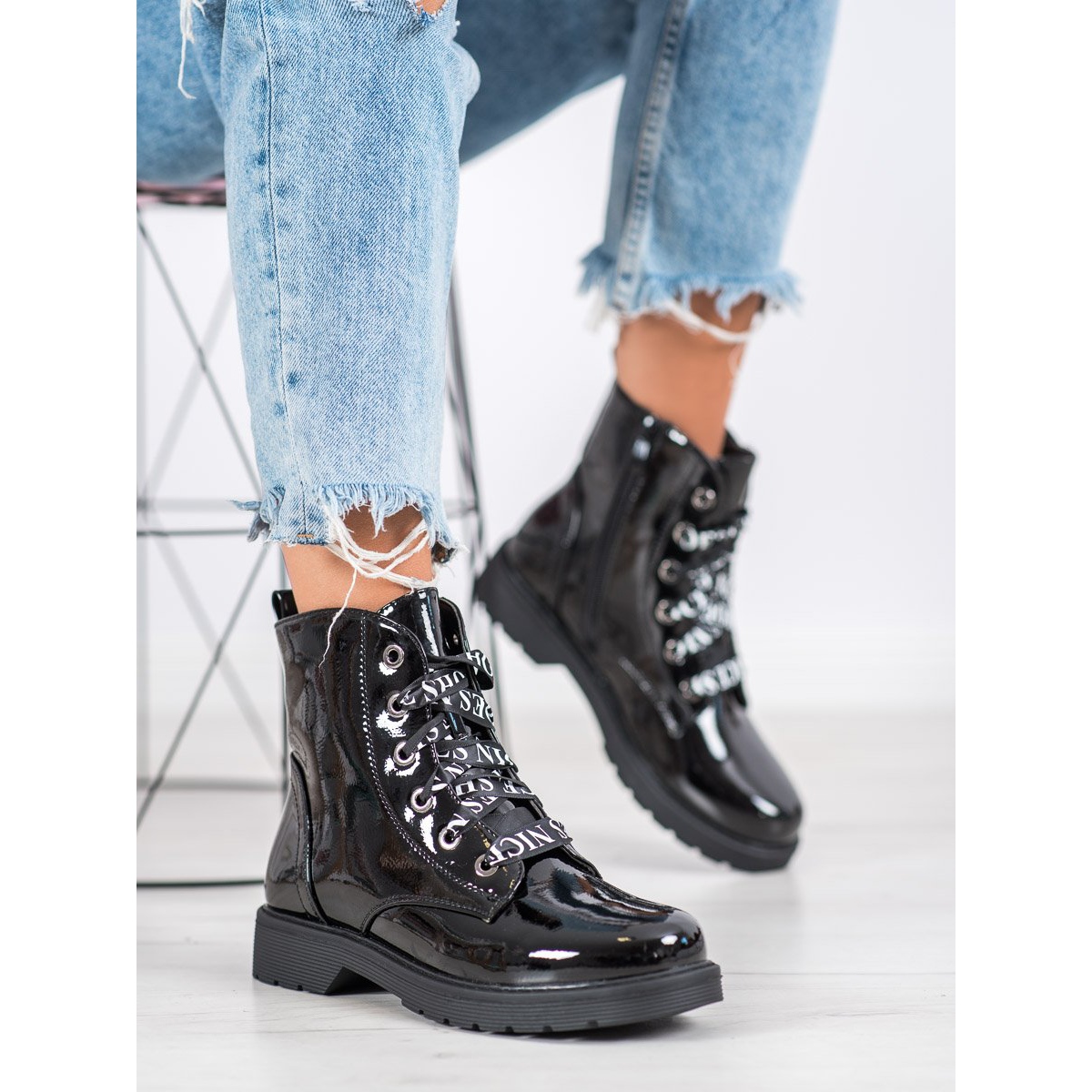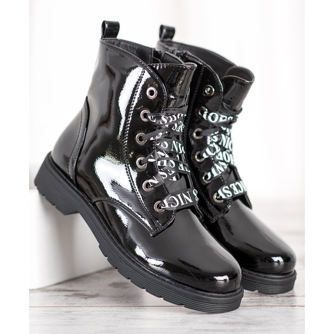 Upptäck oöverträffad stil och komfort med VINCEZA lackerade arbetare i en klassisk svart färg. Dessa fashionabla bovver-stövlar skapade med kvinnor i åtanke är det perfekta valet för varje dag, speciellt under höst/vintersäsongen. Tack vare den eleganta lackerade finishen kommer du att sticka ut i mängden genom att kombinera avslappnad och rockig stil.