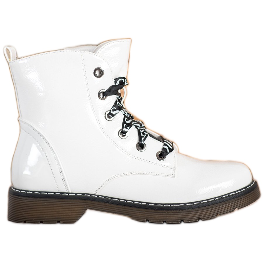 Upptäck den senaste stilen med lackade VINCEZA-arbetare i vitt! Dessa extraordinära skor, skapade för moderna kvinnor, kombinerar en avslappnad och rockig karaktär som perfekt matchar många stilar.