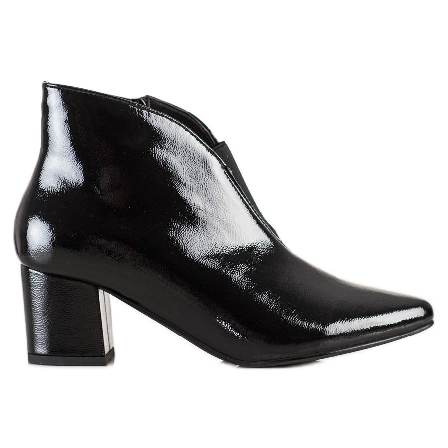 Stövlarna är gjorda av högkvalitativa material - den yttre delen är ekologiskt lack, vilket ger dem elegans och glans. Insidan av textilmaterial säkerställer bärkomfort och isoleringen skyddar mot kyla. En plastsula med slitbana garanterar stabilitet och säkerhet på olika underlag.
