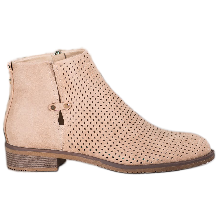Ljusbruna VINCEZA öppna stövlar är det perfekta valet för kvinnor som vill kombinera mode med komfort. Dessa unika skor, gjorda av högkvalitativt läderimitation, kännetecknas inte bara av sin estetik, utan också av sin funktionalitet. Det genombrutna mönstret ger utmärkt ventilation, vilket gör dem bekväma att bära, speciellt under kallare dagar.