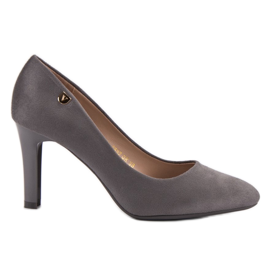 Insidan av skorna är färdig med naturligt läder, vilket tillåter fritt luftflöde och förhindrar att fötterna svettas. Gråa VINCEZA-högklackar i mocka är ett exempel på en modeklassiker som lätt passar in i en mängd olika stilar - från eleganta klänningar till vardagliga outfits.
