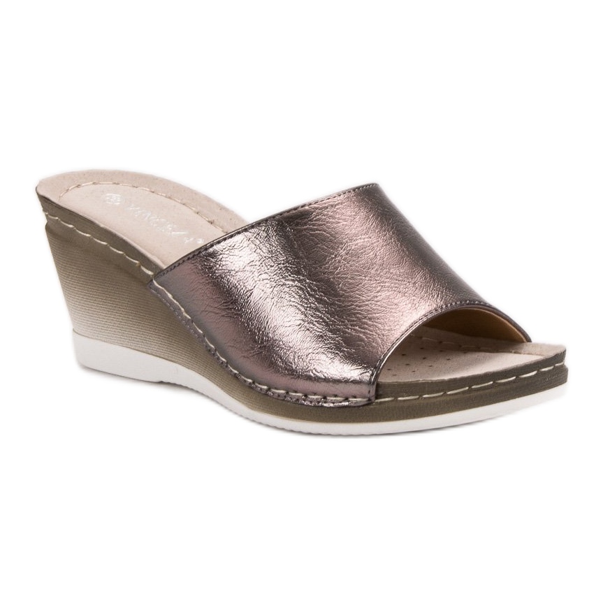 Kilskor med en klackhöjd på 7 cm exponerar effektivt benen och smalnar figuren, vilket ger varje kvinna självförtroende. Flip-flops är slip-on, vilket gör dem lätta att ta av och på, och den syntetiska sulan med slitbana ger tillräckligt med grepp på en mängd olika ytor, vilket gör dem till ett idealiskt val för dagligt bruk.