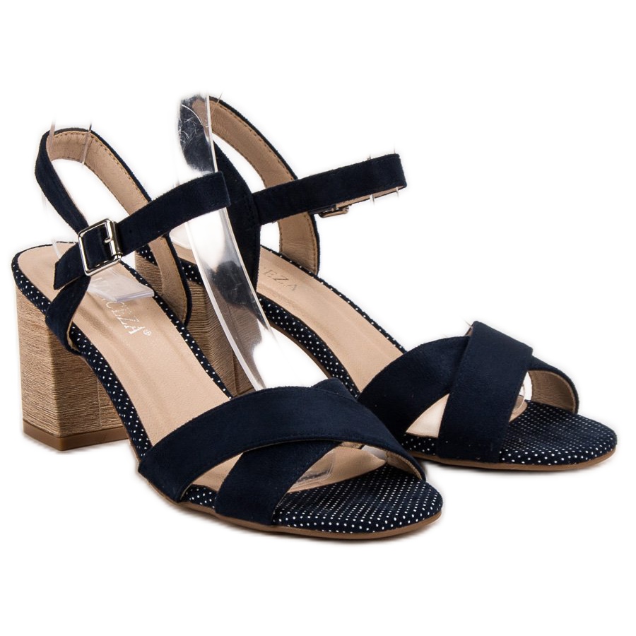 VINCEZA högklackade sandaler i en marinblå nyans är ett perfekt val för eleganta tillfällen som nattvarden eller ett bröllop. Tillverkade av ekologisk mocka av hög kvalitet, dessa snygga skor kombinerar komfort och moderiktig design. Tack vare hälen på 7,5 centimeter framhäver de figuren perfekt och säkerställer samtidigt stabilitet när de bärs.