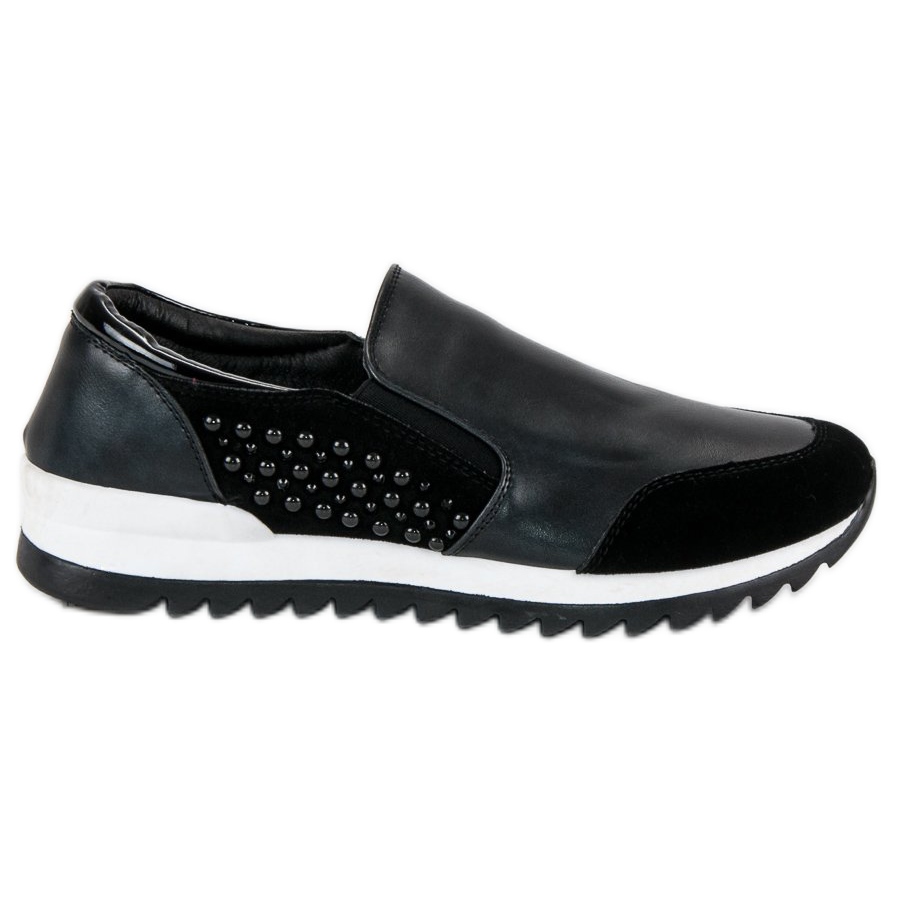 Modellen kännetecknas av en rund tå och låg höjd, vilket gör den perfekt för vardagsstyling. Tack vare slip-on-fästet blir det extremt enkelt och bekvämt att ta på dem. Dessutom, dekorerade med subtila strass, ger de lite glans och originalitet.
