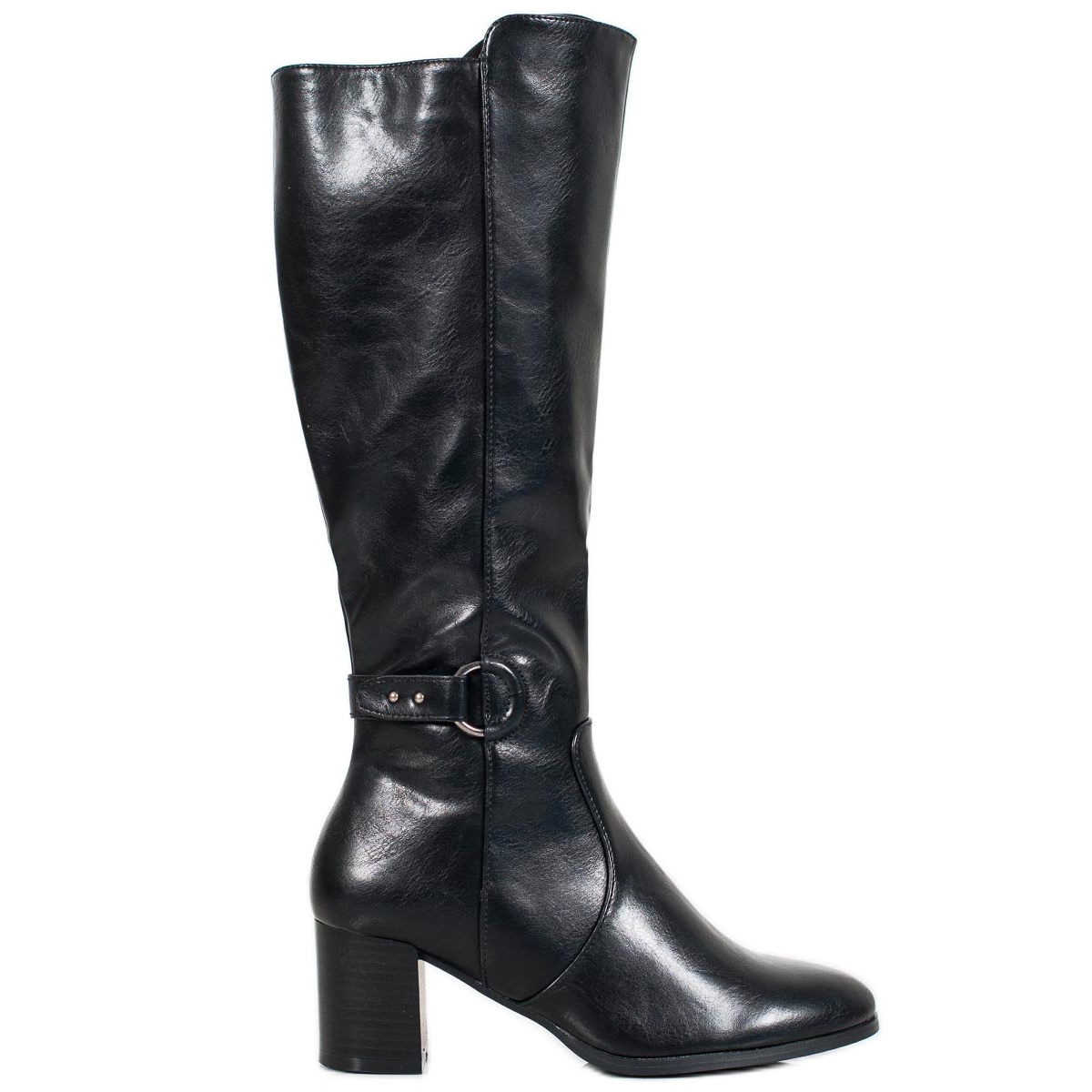 En ytterligare fördel är detaljerna - ett subtilt dekorativt spänne ger dem karaktär, och en slät syntetisk sula gör att gå i dem till ett rent nöje. Insidan av stövlarna dekorerade med ett spänne är fodrade med textilmaterial, vilket ökar komforten att bära dem. Bredden på ovandelen (38 cm) och den runda tån ger en perfekt passform till benet.