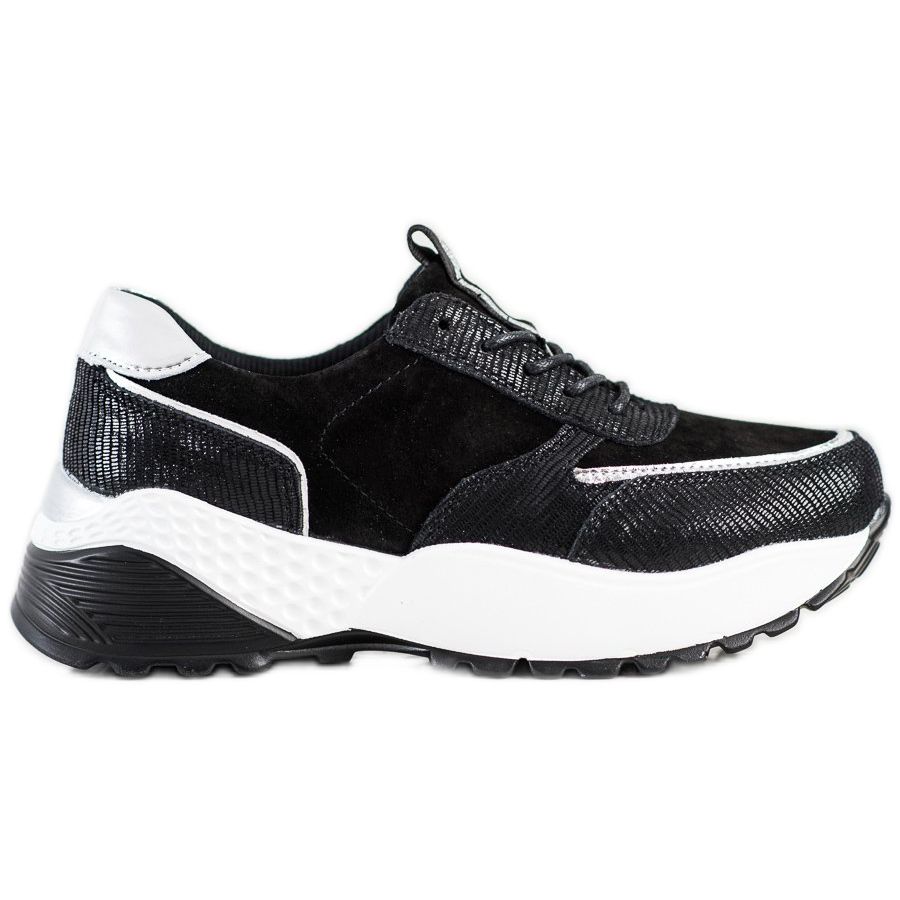 VINCEZA Black Leather Sneakers är ett utmärkt val för kvinnor som letar efter moderiktiga och bekväma sportskor. Dessa sneakers är gjorda av högkvalitativt naturligt läder och kännetecknas av en elegant svart och silverfärg som passar perfekt in i aktuella modetrender.