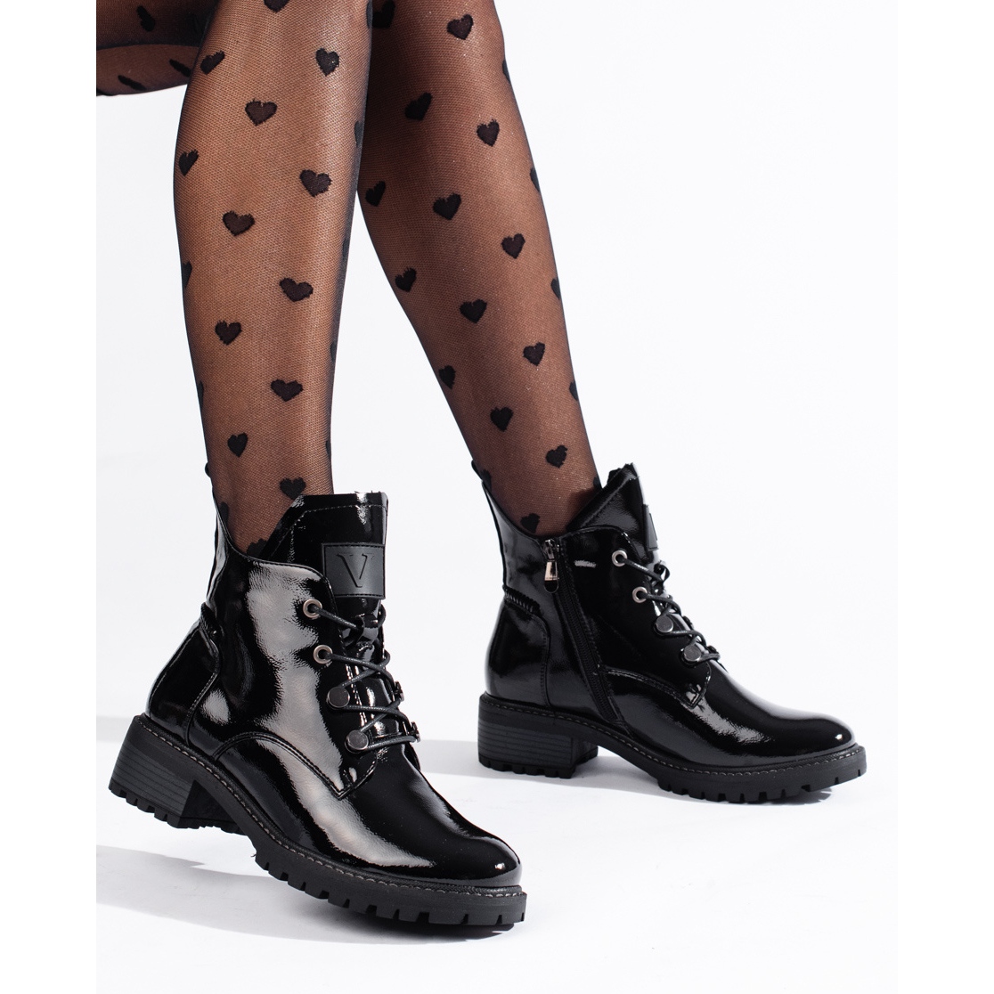 Detaljer: Vinceza svartlackade stövlar för kvinnor