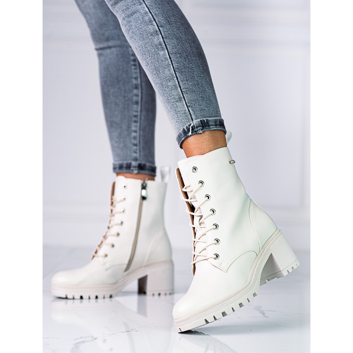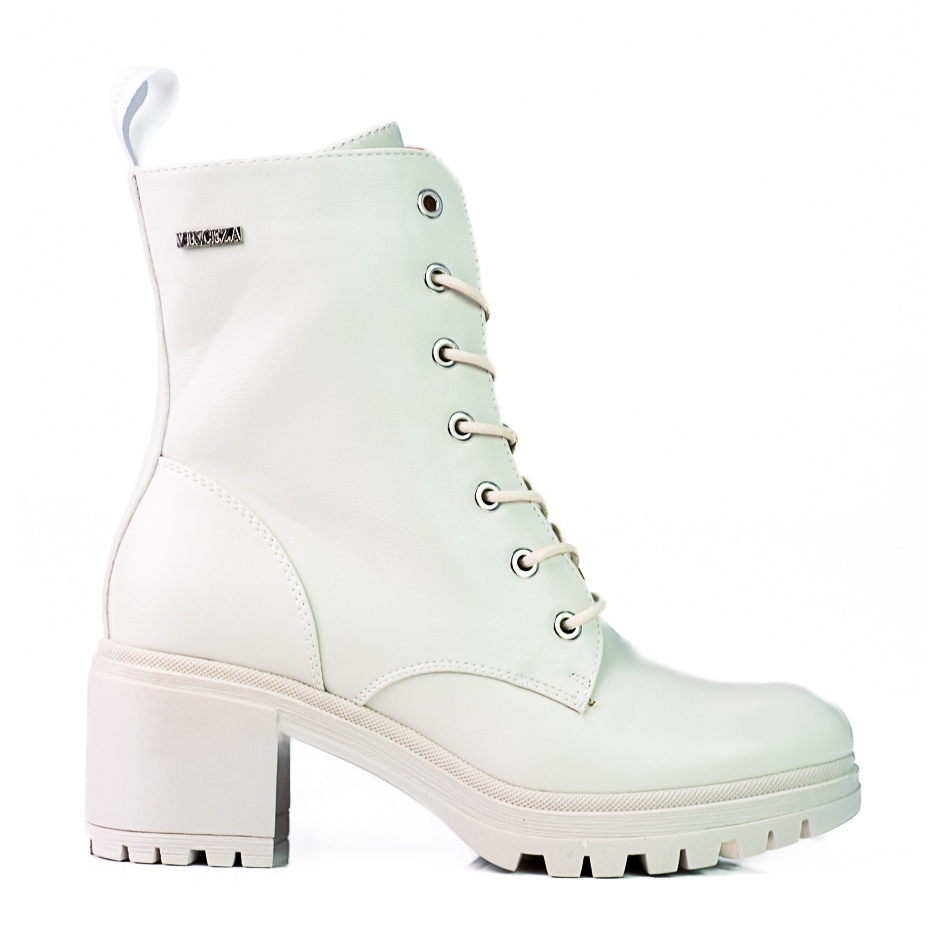 Det här är beiga arbetsstövlar med snörning för kvinnor från Vinceza, som kommer att vara ett perfekt val för höst/vintersäsongen. Dessa snygga ankelboots kombinerar avslappnad och rockig stil, perfekta för vardagsutflykter. Tillverkade av ekologiskt läder med en strukturerad yta ser de extremt eleganta ut, och deras tidlösa beige färg gör det lätt att matcha många stilar.