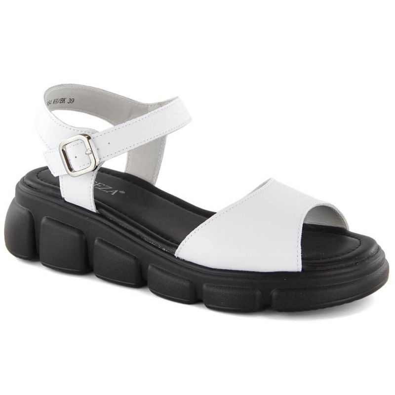 Tack vare en 5 cm hög kil får du extra höjd och elegans utan att ge upp komfort. Universella vita färger gör att sandaler enkelt kombineras med olika kläder, från luftiga klänningar till avslappnade shorts.