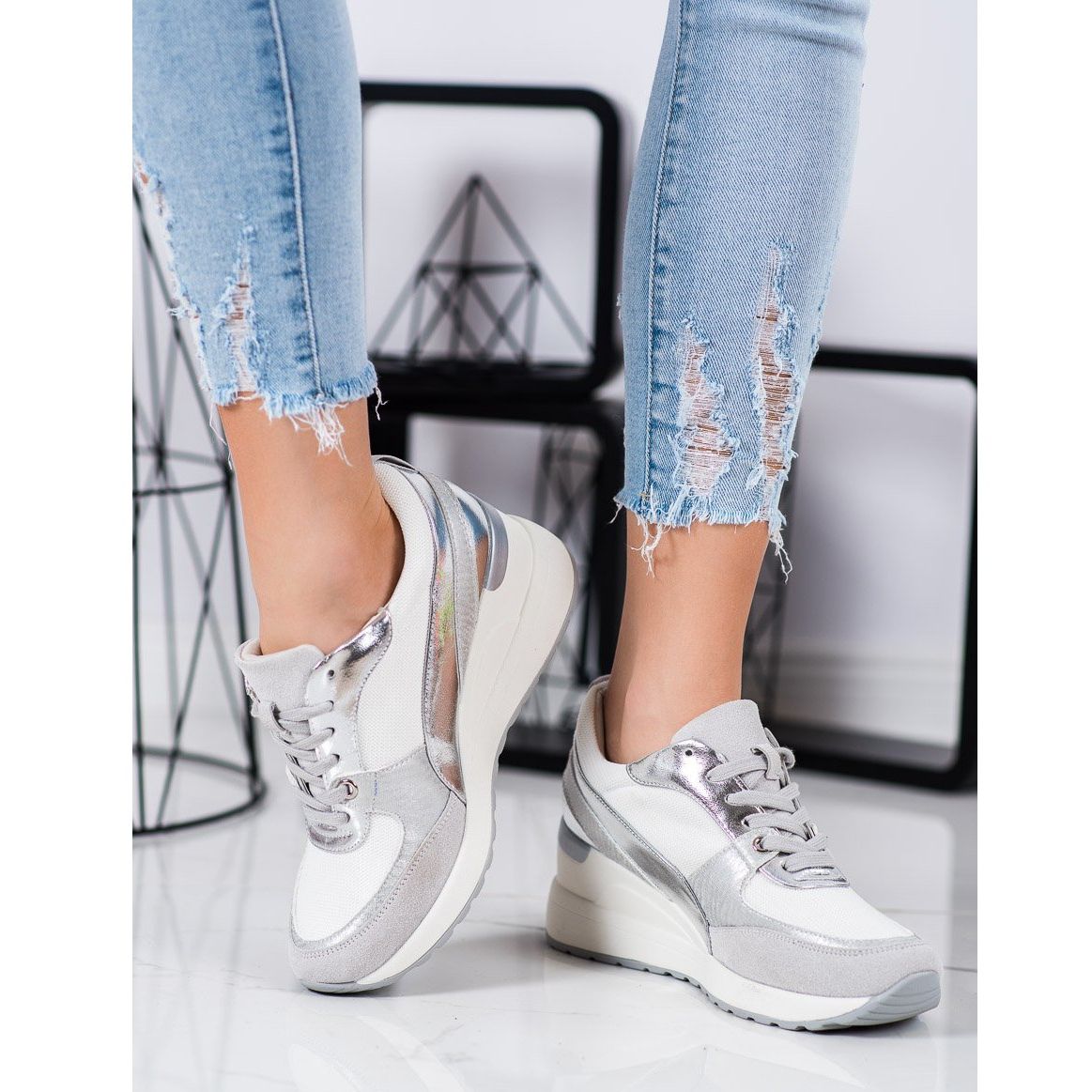 VINCEZA wedge sneakers i vitt är ett perfekt val för varje aktiv kvinna som värdesätter komfort och stil. Dessa klassiska sportskor för kvinnor är perfekta för dagligt bruk, och kombinerar ett moderiktigt utseende med funktionalitet.