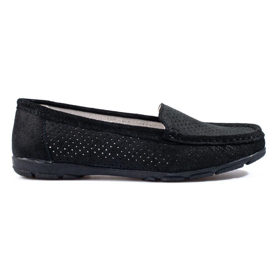 Vinceza Black Leather Loafers - En kombination av klassiker och komfort. Tillverkad helt av naturläder (övre, interiör och insats), i elegant svart med dekorativa öppningsinsatser. Den klassiska, runda näsan och den insatta låset säkerställer snabb att sätta på, och den inbyggda, mjuka hälen stabiliserar foten och ökar att bära komfort.
