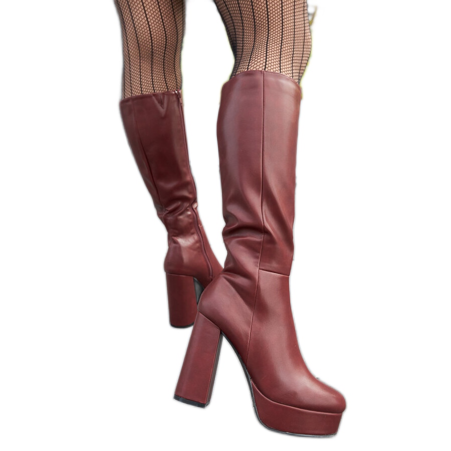 Inna marka Vinröd platå och högklackade stövlar från Zoccorino