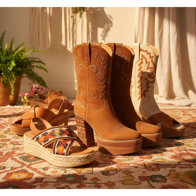 Cowboyboots, det vill säga boots inspirerade av cowboys från vilda västern, har också sina rötter i 1970-talets mode. De kännetecknas av en spetsig tå, lutande häl och dekorativa sömmar. Bär dem med bootcut-jeans eller långa, flytande boho-klänningar för en autentisk look av eran.