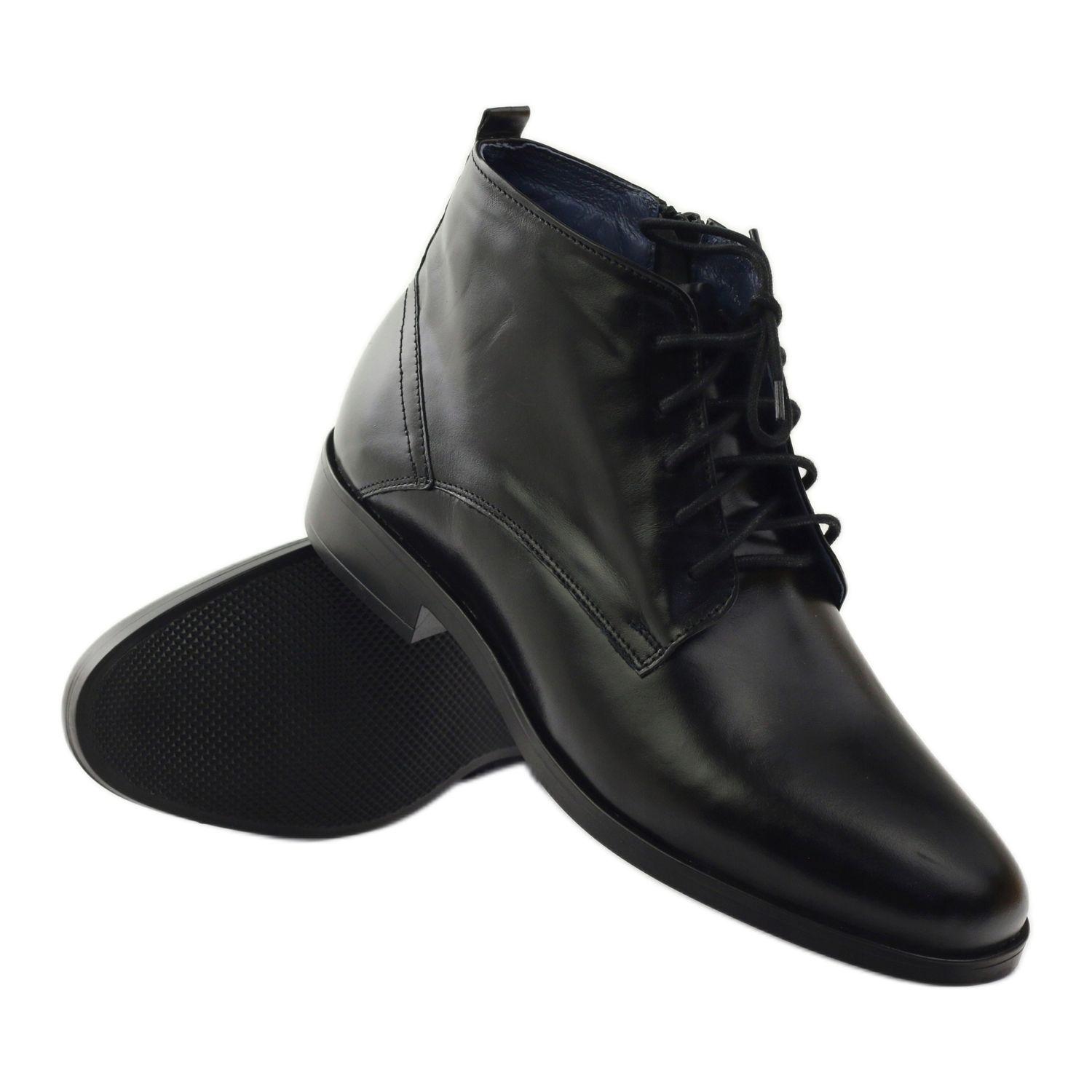 Nikopol stövletter för män modell 663 finns i en klassisk svart färg, vilket gör dem lätta att matcha med olika outfits. De kommer säkert att vara ett perfekt komplement till alla mäns garderob. Tack vare sitt höga snitt och gedigna utförande är de den perfekta lösningen för vinterdagar.