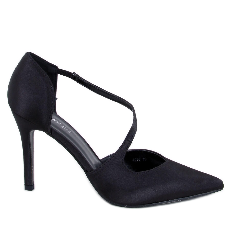 När du letar efter skor som kommer att fungera lika bra på en elegant fest och under ett viktigt affärsmöte, är det värt att uppmärksamma asymmetriska Vintoni Black kvinnors höga klackar. Den svarta satinfinishen på denna modell är kvintessensen av klassisk med en modern accent.