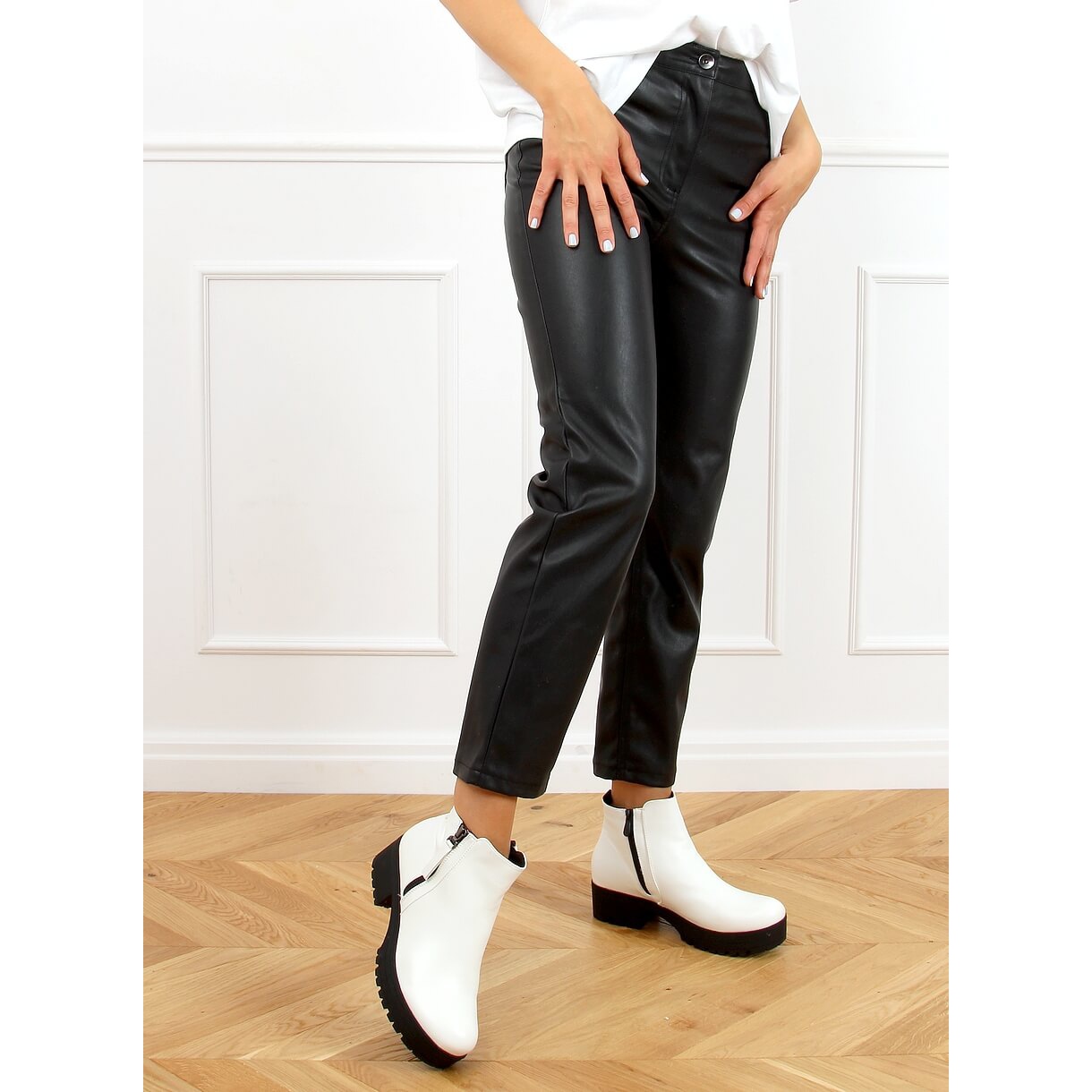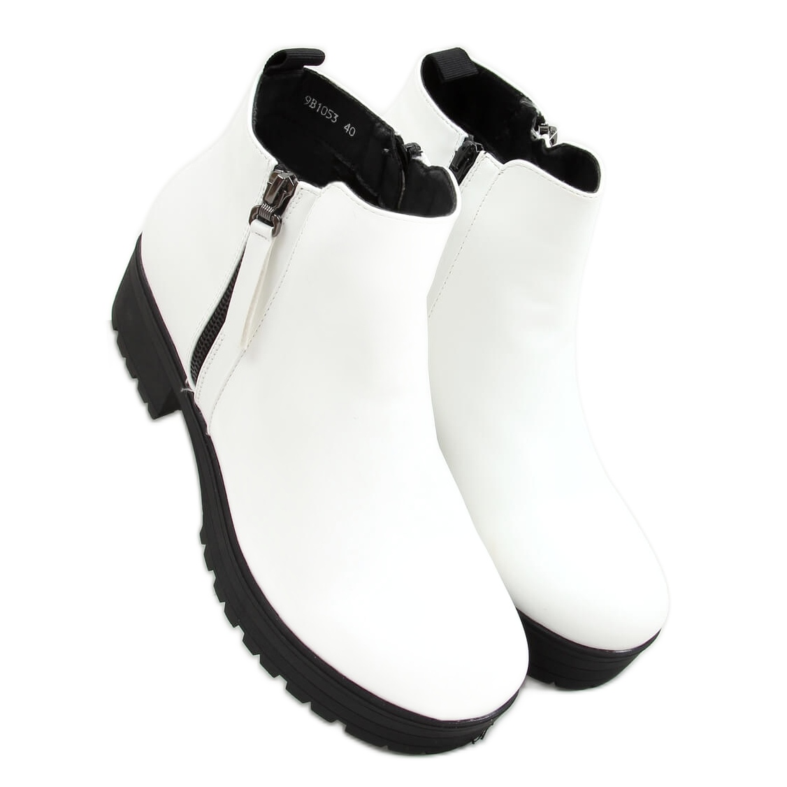 9B1053 Vita ankelstövlar är det perfekta komplementet till all avslappnad styling. De matchar både byxor och klänningar, och deras släta mönster gör att de enkelt kan kombineras med en mängd olika accessoarer. Produktens vikt är endast 1,2 kg, vilket gör den lätt och bekväm att bära.