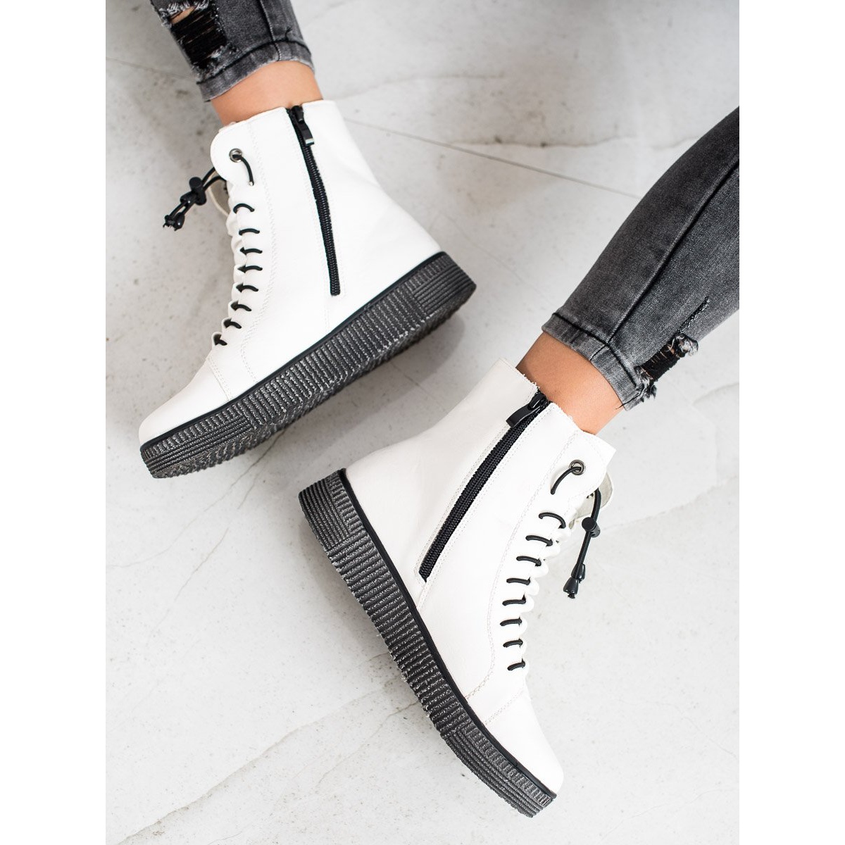 Lär känna vita plattformsarbetare från det kända varumärket SHELOVET - det perfekta valet för kvinnor som värdesätter stil och komfort. Dessa fashionabla ankelboots, en del av KeeShoes-kollektionen, är perfekta för vardagsstyling, och deras universella design är i linje med de senaste trenderna.