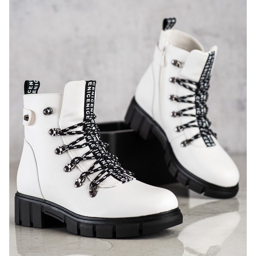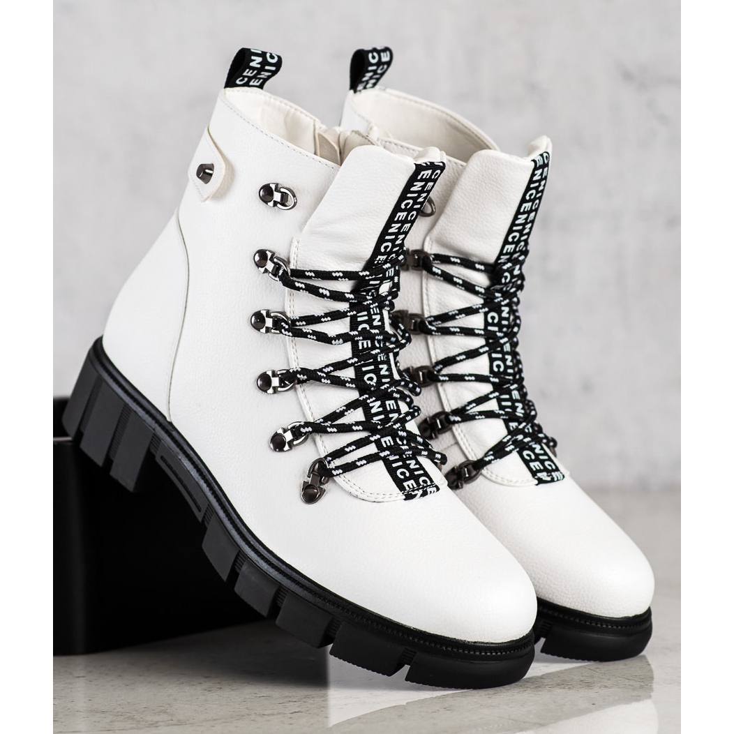 Vi presenterar vita plattformsarbetare från det välkända varumärket Vinceza, som säkerligen kommer att bli en oumbärlig del av din höst-vintergarderob. Tack vare sin avslappnade stil passar dessa stövlar både till vardags och lite mer eleganta stilar.