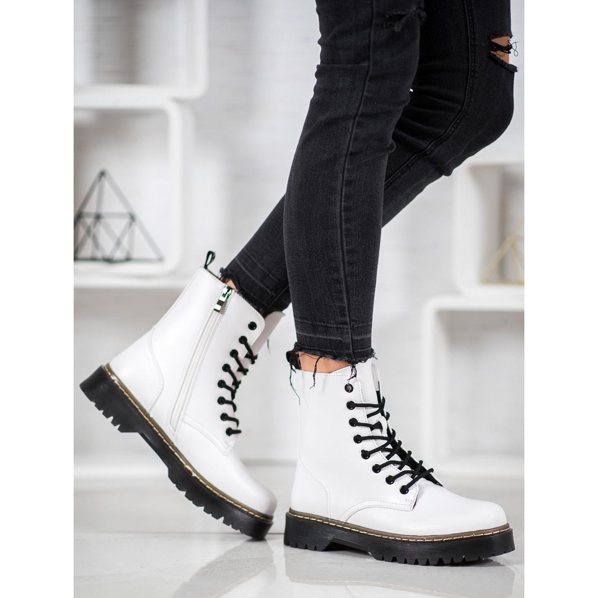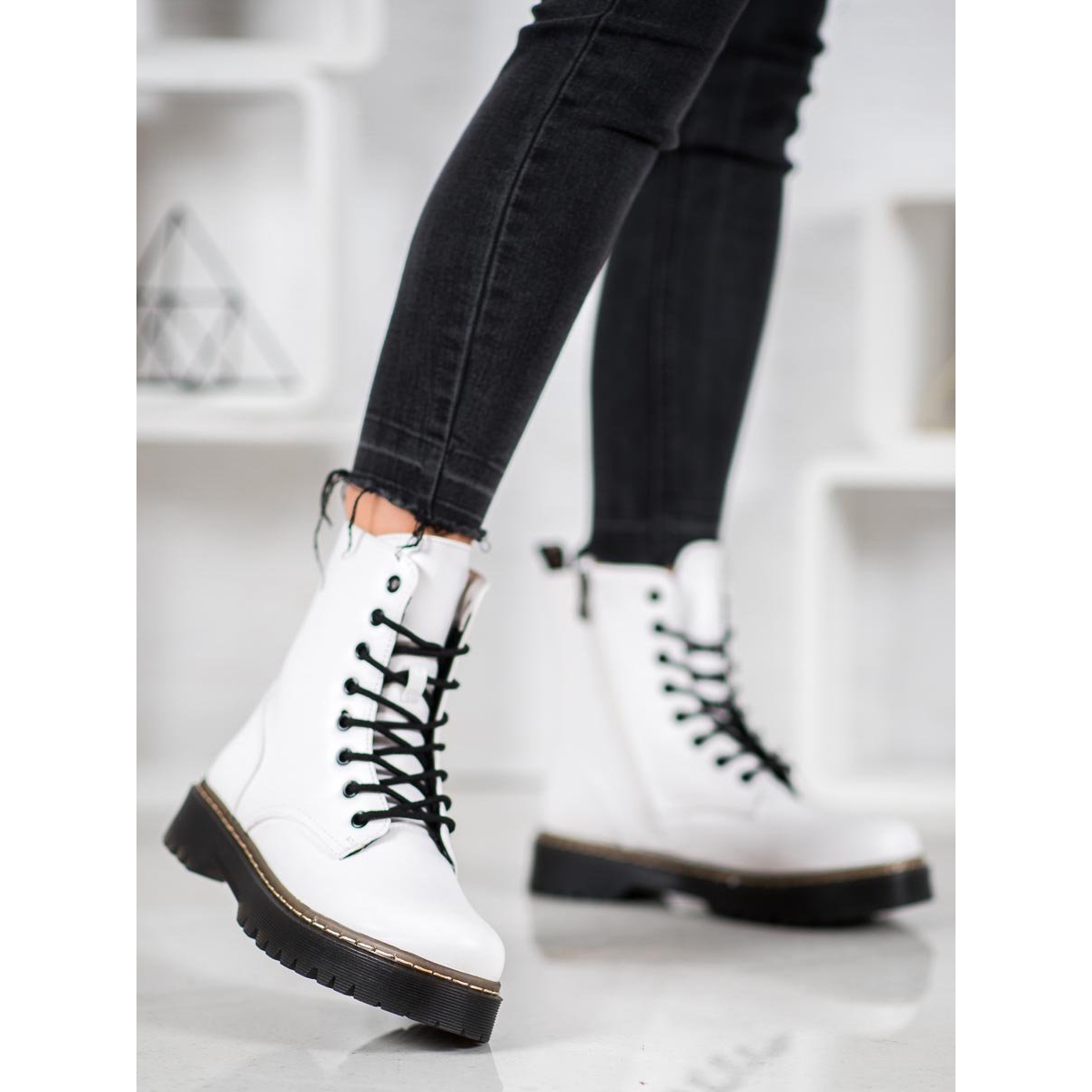 Vita arbetarstövlar från SHELOVET är det perfekta valet för kvinnor som letar efter moderiktiga och bekväma vardagsskor. De är gjorda av ekologiskt läder av hög kvalitet och kombinerar estetik och funktionalitet. Den ankellånga ovandelen ger inte bara stil, utan ger också tillräckligt stöd och komfort när du går.