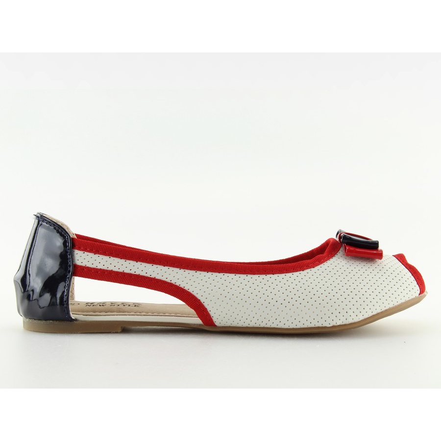 Detaljer: Vita ballerinor med öppen tå D314 röd