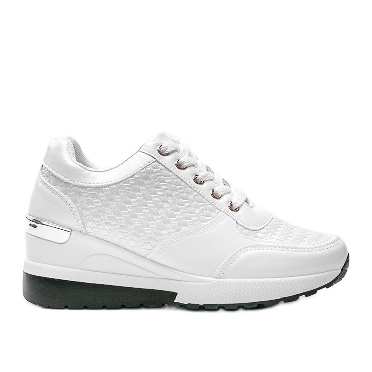 Dessa är vita glänsande Mara wedge sneakers - det perfekta valet för moderna kvinnor som värdesätter stil och komfort! Dessa unika skor designade av varumärket Inna kombinerar elegans och en avslappnad karaktär. Gjorda av högkvalitativt ekologiskt läder, sneakers drar till sig uppmärksamhet med subtil, glänsande prägling och ett iögonfallande metalliskt inlägg på baksidan av sulan.