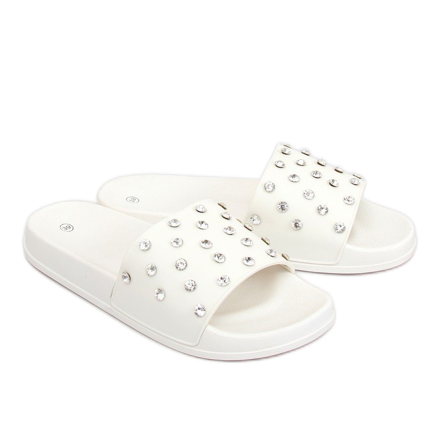 CK67P Vita flipflops är perfekta för sommarpromenader, möten med vänner eller koppla av på stranden. De kan vara ett perfekt komplement till både avslappnade och mer eleganta outfits. Dessutom ger dekorationer i form av strass och dubbar dem lite karaktär och stil.