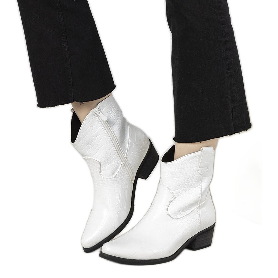 Detaljer: Vita cowboystövlar i Aurore -krokodilhudsmönster