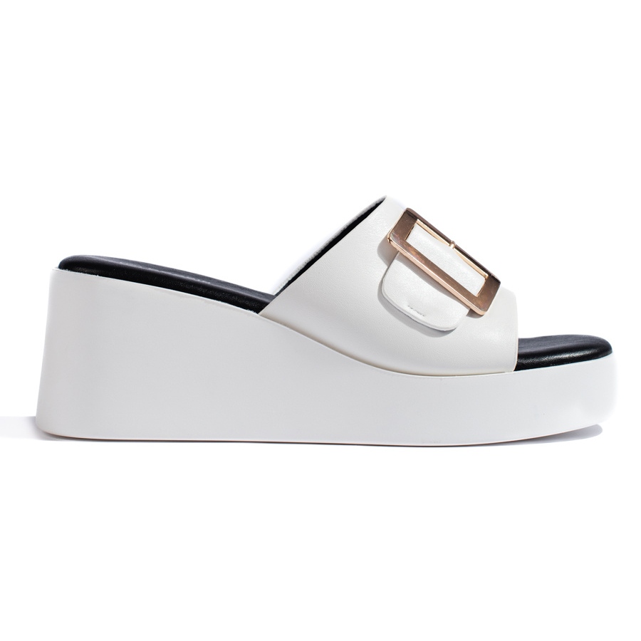 Vita kilmulor dekorerade med subtila guldaccenter passar perfekt med många stilar, från vardagliga outfits till mer eleganta set. Innersulan av ekologiskt läder säkerställer tillräcklig ventilation och komfort för fötterna hela dagen.