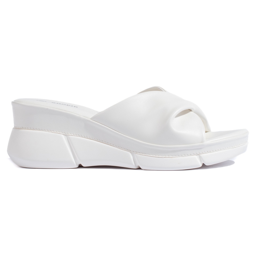 Dessa vita kilar sätts in, vilket innebär att det är extremt enkelt och snabbt att ta på sig och ta dem är extremt enkelt och snabbt. Utan en näsa är de ett utmärkt alternativ till traditionella sandaler, och deras minimalistiska design utan design gör dem enkla att kombinera med färgglada klänningar, byxor eller shorts.