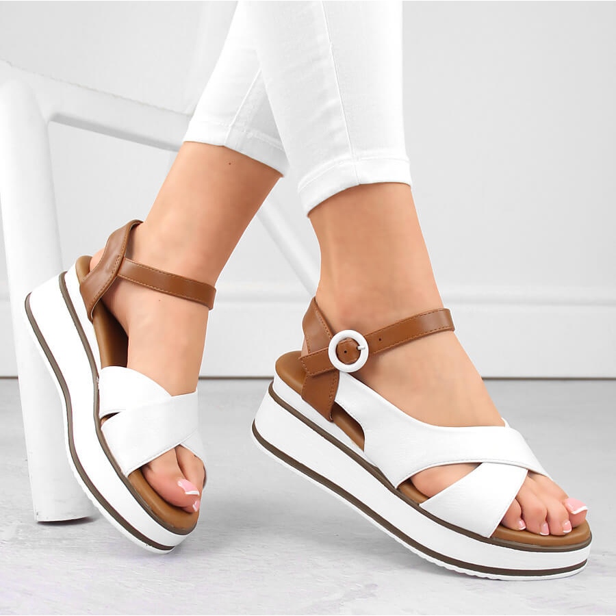 Denna modell kännetecknas av ett sportigt snitt som är perfekt för sommarstyling. Den vita färgen med bruna accenter ger dem fräschhet och naturlig charm, vilket gör dem lätta att matcha med en mängd olika outfits – från luftiga klänningar till vardagsshorts.