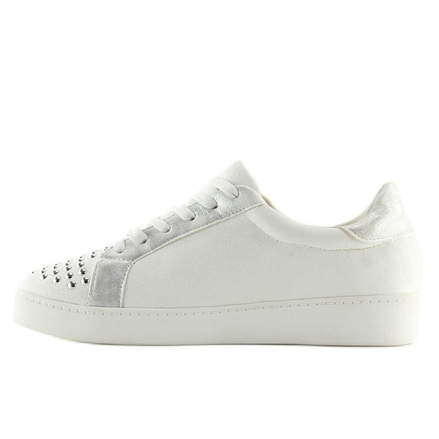 G253 Vita damsneakers är ett absolut måste i garderoben för varje modeälskare! Dessa unika skor kombinerar moderna trender och oöverträffad bärkomfort. Tillverkade av ekologisk mocka och ekologiskt läder, de kännetecknas av en unik struktur som fångar ögat. Ytterligare dekorationer i form av nitar ger karaktär och gör dem perfekta för casual styling.