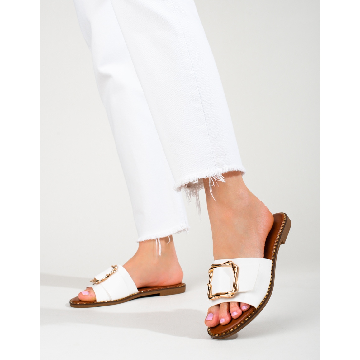 Välj elegans för varje dag och njut av komforten som erbjuds av vita Shelovet flip-flops med spänne!