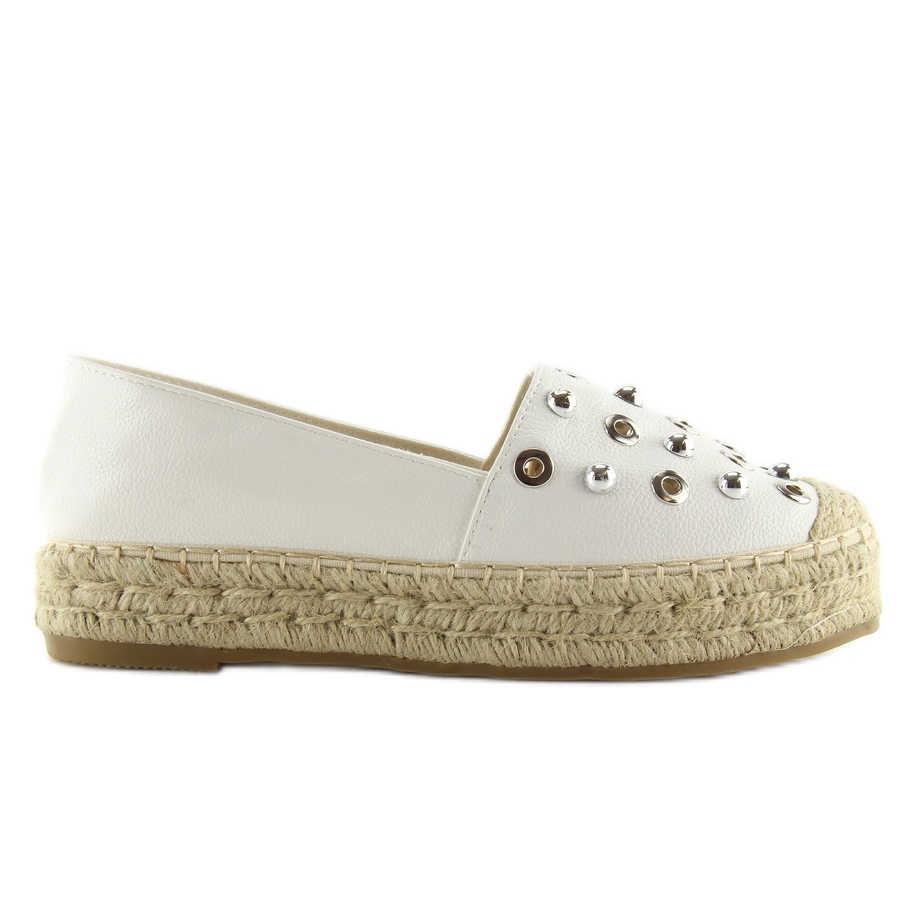 Lär känna kvinnors vita espadrillor 7680 vit - det perfekta valet för sommardagar! Dessa unika skor med höga sulor kombinerar elegans och komfort, vilket gör dem till ett perfekt komplement till alla stylingar. Det flätade snöret runt sulan och på tån ger dem lätthet och subtilitet, medan dekorativa nitar och silverringar introducerar en ton av originalitet som väcker uppmärksamhet.