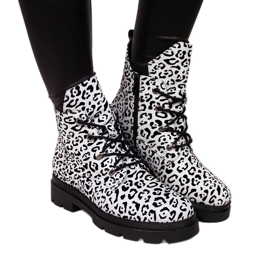 De kännetecknas av en vacker ovandel med originalmönster som säkert kommer att lägga till glans till vilken outfit som helst. Vita ankelboots kommer att vara ett perfekt val för höst och vinter, som kompletterar både avslappnade och mer eleganta outfits. Deras klassiska fotledssnitt med rund tå och platt häl (4,5 cm) gör dem inte bara snygga, utan också bekväma att bära.