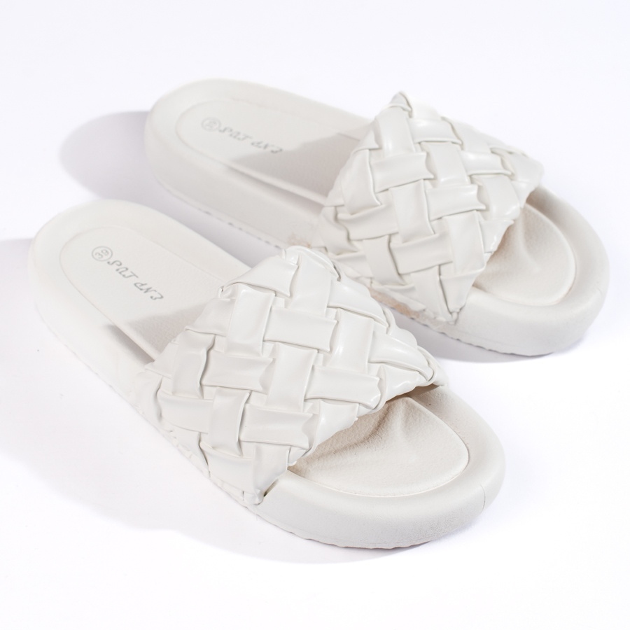 - Modell: Vita flätade tofflor för kvinnor