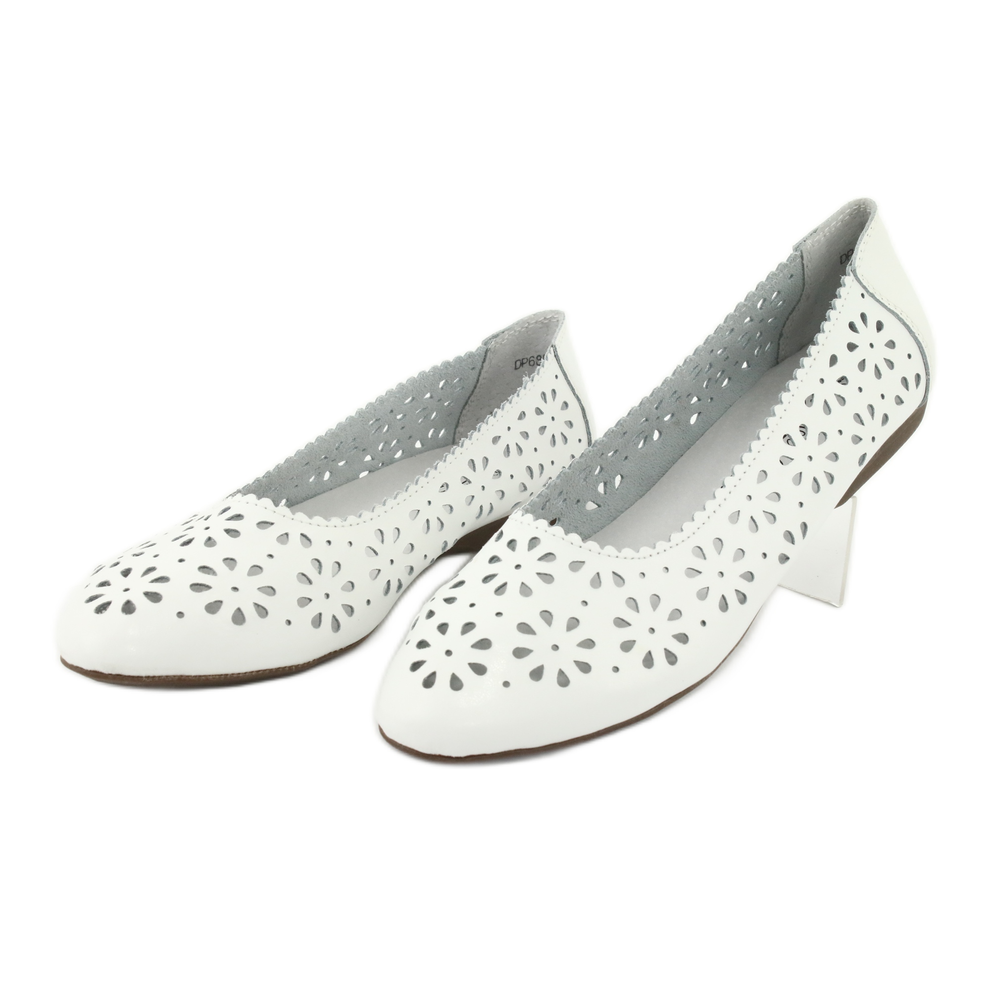 Vi presenterar Filippo 680 vita genombrutna balettlägenheter - ett perfekt val för varma dagar! Dessa eleganta damskor kännetecknas av sin moderna design och funktionalitet. Ovandel av högsta kvalitet naturligt läder i en klassisk vit färg gör dessa balettlägenheter inte bara snygga utan också extremt bekväma.