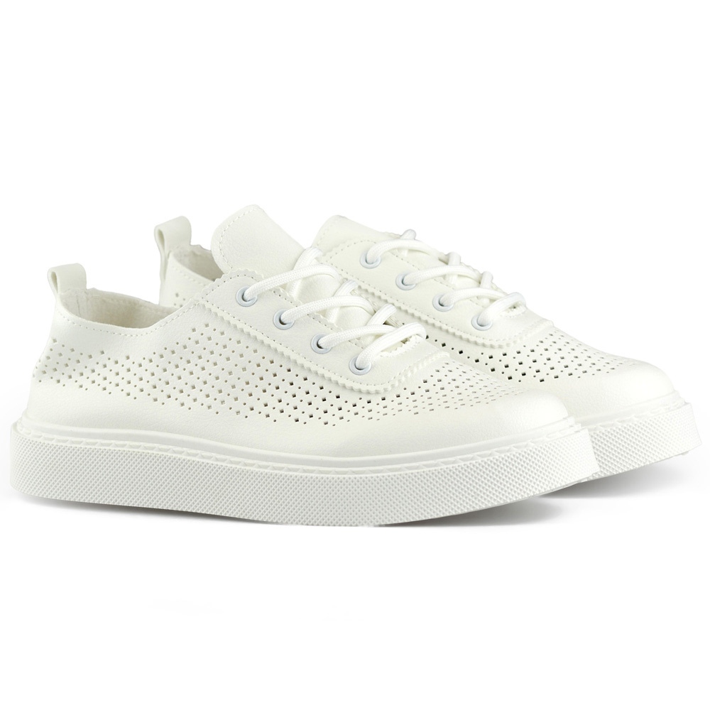 Dessa vita genombrutna sneakers för kvinnor är ett perfekt alternativ för våren och sommaren. Kom till din stil och komfort med denna unika modell!