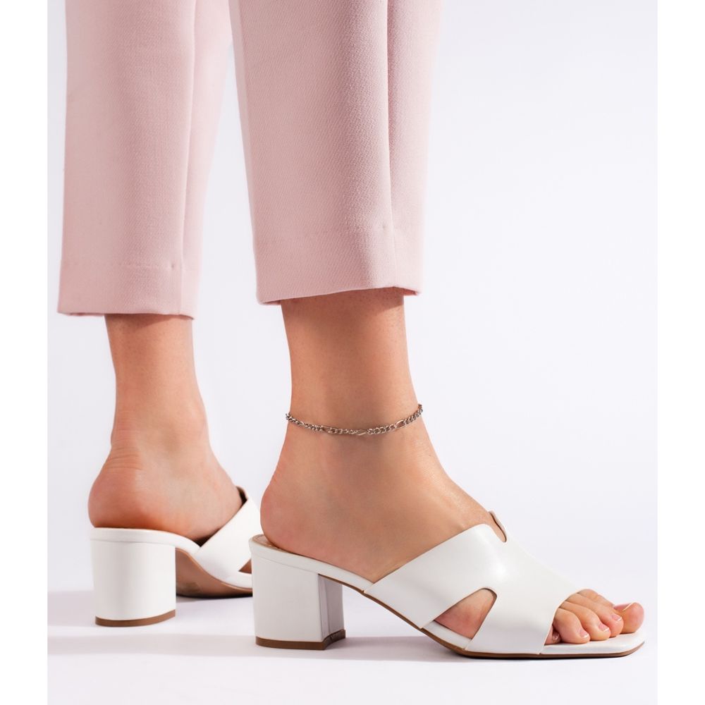 Våren och sommarens väder gynnar att bära skor som kombinerar funktionalitet och ett moderiktigt utseende. Vita högklackade mulor är ett måste i alla kvinnors garderob, vilket säkert kommer att locka uppmärksamhet och betona den unika stilen hos sin ägare.