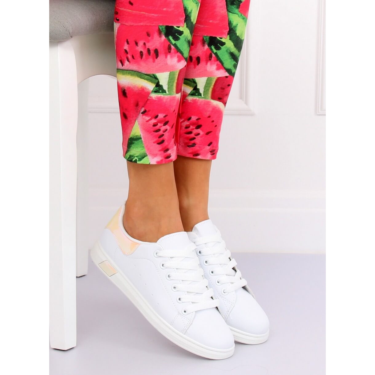 De ser inte bara bra ut, utan de är också extremt praktiska för dagligt bruk. Du kan bära dem för promenader, shopping eller möten med vänner, vilket ger lite glans och originalitet till din look. Investera i din vårlook och välj BL147NEW Champagne holografiska sneakers - de kommer säkert att bli dina favoritskor de kommande dagarna! Vi garanterar att du kommer att känna dig både bekväm och snygg i detta par.