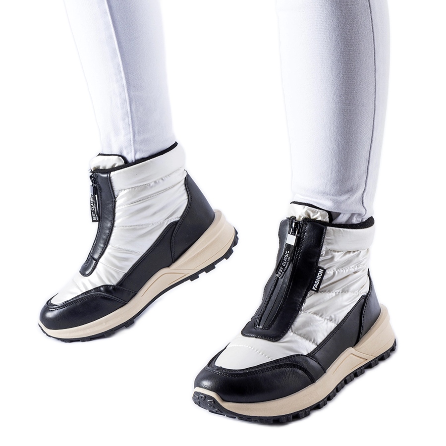 Ritter Snow Boots smälter bra med nerjackor, ett par matchade jeans eller leggings och en lång kappa. Vit färg med en svart sula ger en universell kontrast och ger friskhet till vinterstyliseringar.