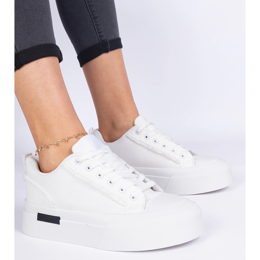 Detaljer: Vita kvinnors material sneakers på plattformen