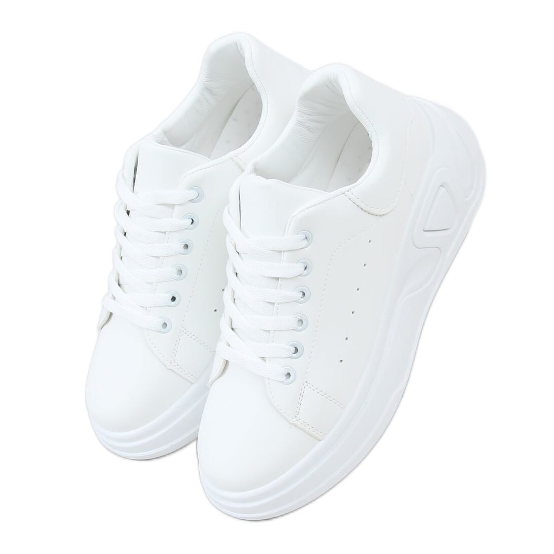 Deras platta, 3 cm höga syntetiska sula säkerställer stabilitet och komfort - perfekt för en lång dag i staden eller på en promenad. Den runda tån tillför lätthet och gör skorna extremt universella. Utan ett mönster, i en vanlig vit färg, kan dessa skor enkelt kombineras med olika stilar.