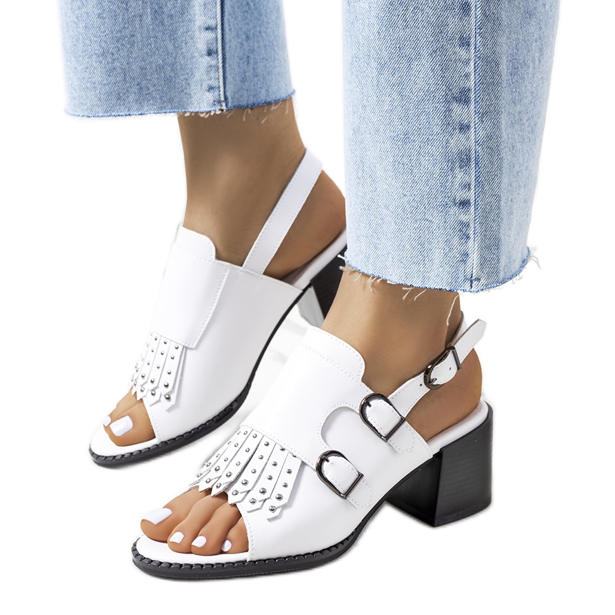 Zand -sandaler är en kombination av feminin elegans och komfort. De byggda övre med dekorativa skär och effektiva fransar och strass lockar ögonen, och en bred, stabil stolpe (höjd 6 cm) förlänger vackert benen, samtidigt som det ger lite stöd vid varje steg. Det naturliga läderinsulaen tar hand om fötternas komfort och andningsförmåga, medan det yttre skiktet av organiskt läder garanterar ett snyggt utseende.