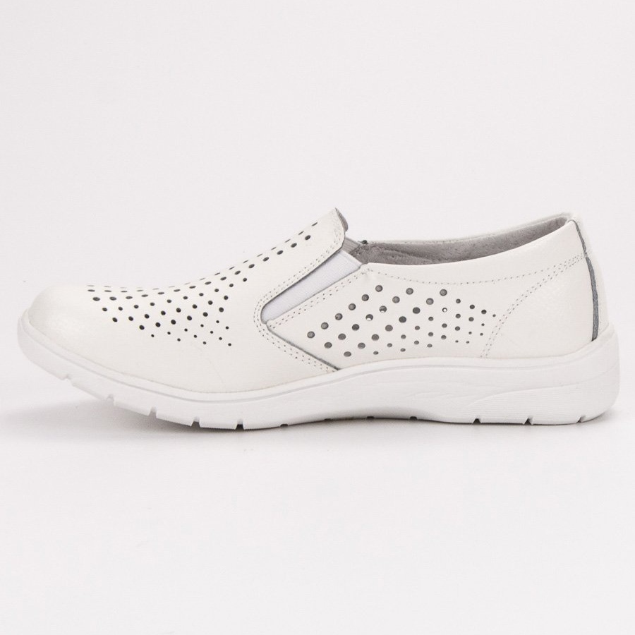 Upptäck mode och komfort med Kylies vita läderskor! Dessa eleganta skor är det perfekta valet för kvinnor som vill kombinera stil med komfort. Tillverkade av högkvalitativt naturligt läder, de utmärks av en genombruten yta som inte bara attraherar ögat, utan också säkerställer utmärkt luftflöde - perfekt för varma dagar.