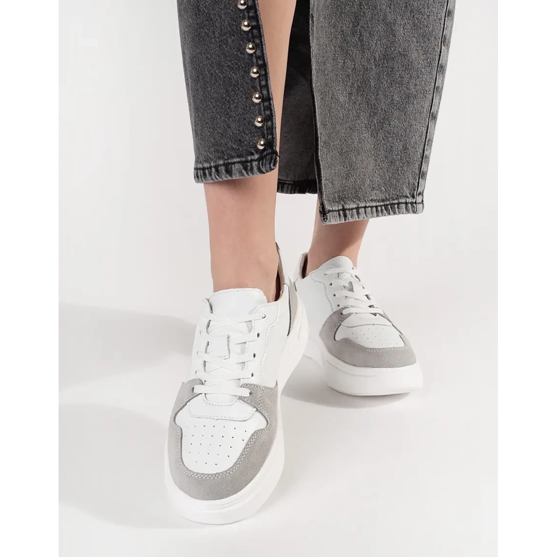 Sneakers kännetecknas av en 4 cm hög plattform, som inte bara optiskt smalar figuren, utan också ger en attraktiv tillväxt. Byggd -in, mjuk häl och en rund näsa gör skorna extremt bekväma, även under långvarig användning.