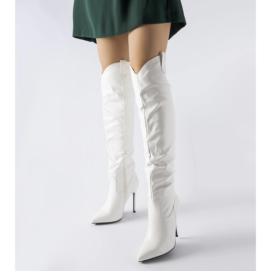 Information: Vita långa stövlar med hög klack från Cerati