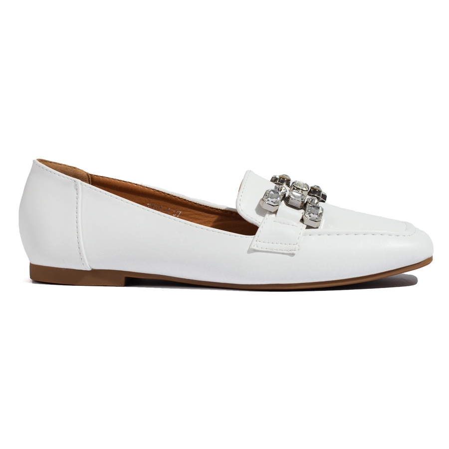 Detaljer: Vita loafers för kvinnor med Shelovet-dekoration