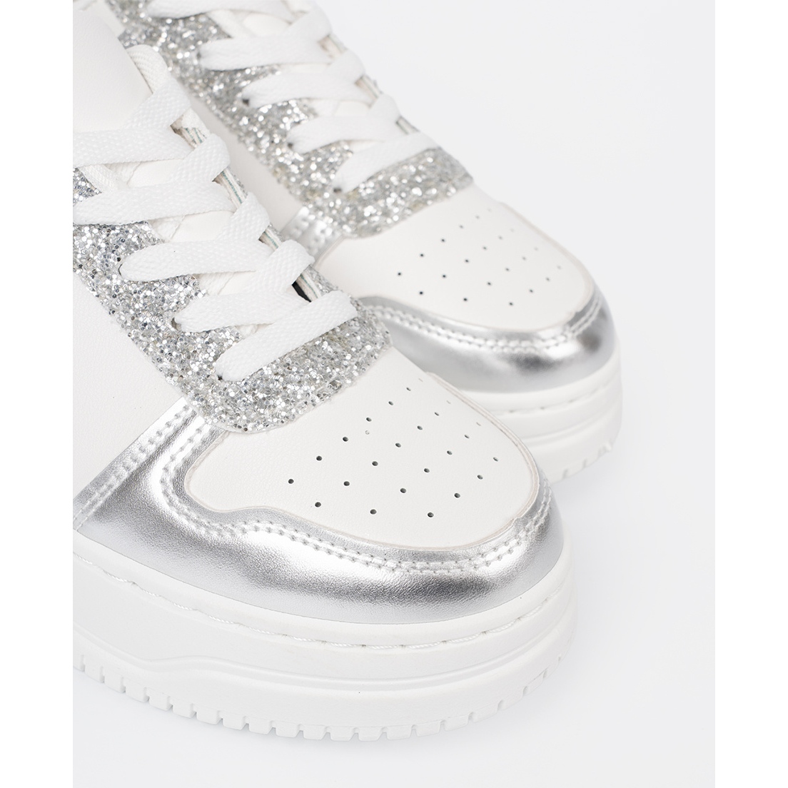 Shelvt Shelvt Vita och silver sneakers med skimrande detaljer mångfärgad