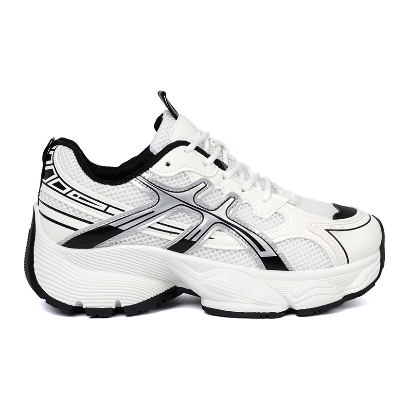 Vi presenterar vita och svarta sneakers från tillverkaren Shelvt, som kombinerar komfort och fashionabla design, perfekt passande i varje daglig stilisering. Dessa bekväma kvinnors sportskor kännetecknas av sport- och modestil, vilket gör dem till ett utmärkt val för både en promenad runt staden och för olika aktiviteter.