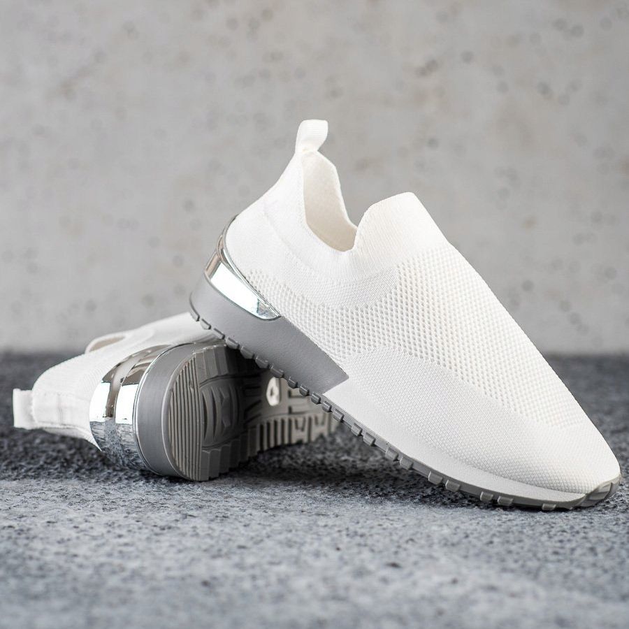 Vita genombrutna sneakers kännetecknas av en minimalistisk design som perfekt passar de senaste trenderna. Deras universella färg gör dem lätta att kombinera med en mängd olika stilar, från sport till vardaglig avslappnad. Tack vare den 5 cm höga plattformen tillför de lätthet och elegans till siluetten.
